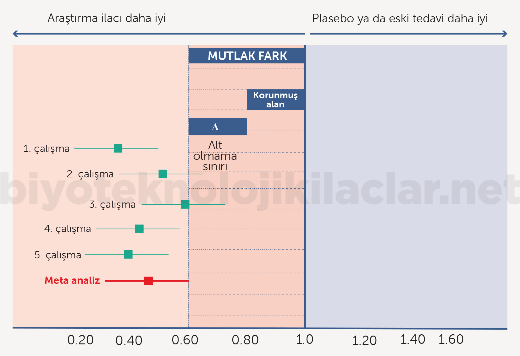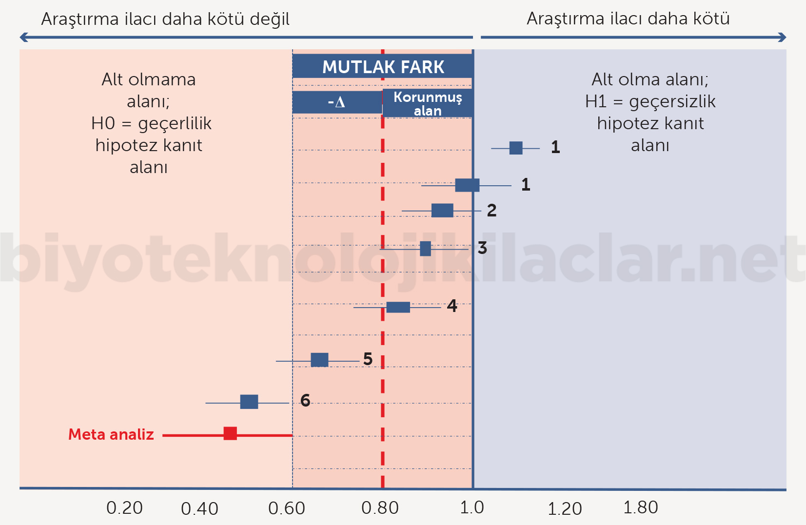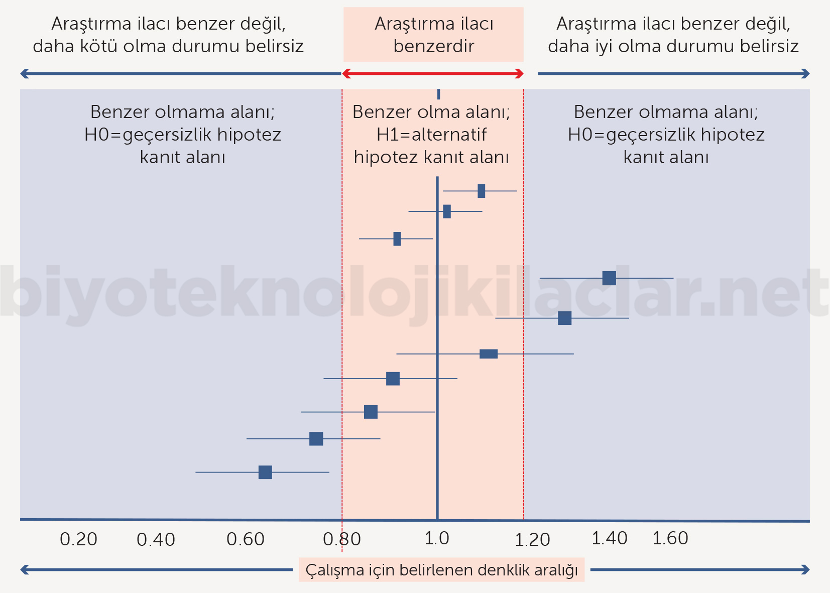 Şekil 10. Denklik çalışmaları araştırma ilacının referans ilaçta belirlenen sınırlarda denk olup olmadığını test eder, üstünlük ya da daha kötü olma durumunu ortaya koymaz. Çalışma denkliği göstermek için yapılmıştır.