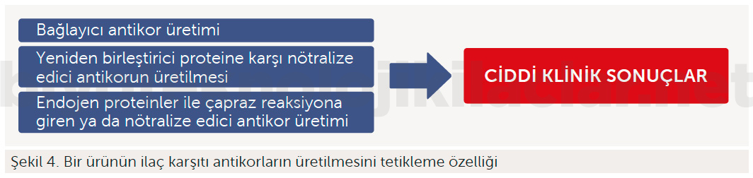 Tüm rekombinant protein ilaçlar hastanın immün sistemi tarafından yabancı olarak tanınma potansiyeline sahiptir. Ürüne çok defa maruz kalmanın antikor üretimini tetikleyebilmesi, antikorları tespit etmek için kullanılacak yöntemle ilgili kesin bir kanı olmaması, deneylerin geniş çapta farklılık göstermesi, antikorların ortaya çıkma süresinin uzun oluşu, hastaların eş zamanlı farklı ilaçlara maruz kalması, farklı dozlarda farklı endikasyonlarda ilaç uygulaması, farmakodinamik sürecin uzun olması, klinik olarak immünojenisiteye sebep olan etkenin tespitini ve dolayısıyla farmakovijilans aktivitelerini de zorlaştırmaktadır.