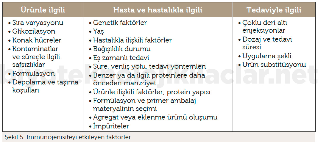 Biyolojik ürünlere ilişkin immünojenisite kaynakları çok faktörlüdür: