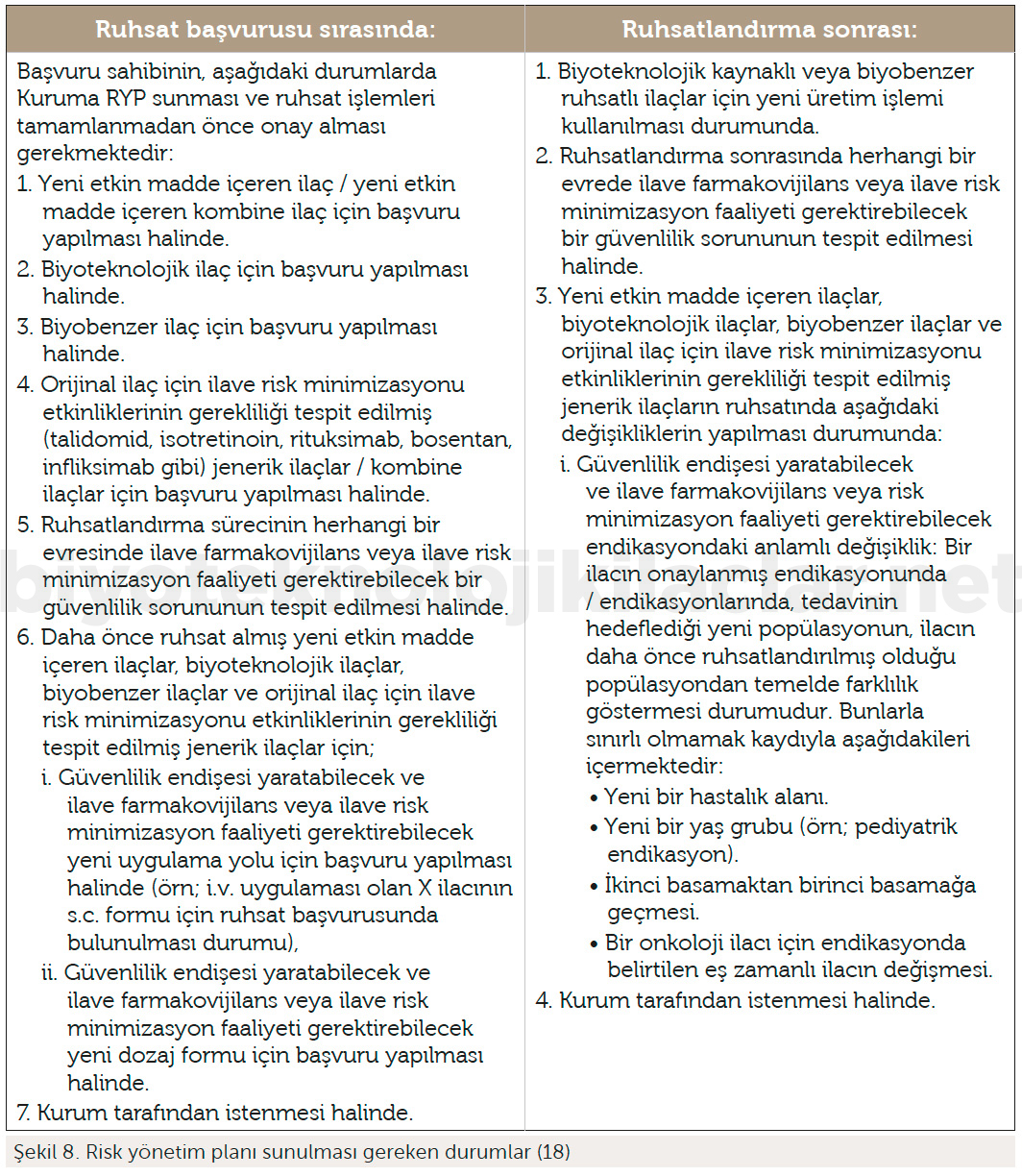 Biyoteknoloji kaynaklı veya biyobenzer ruhsatlı ilaçlar için yeni üretim işlemi kullanılması durumunda risk yönetim planı sunulmalıdır.
