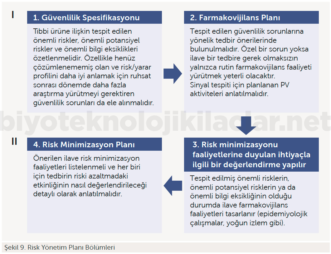 Biyolojik ve Biyobenzer İlaçların farmakovijilans planı güvenlilik sorunlarını tespit ve tanımlamaya yönelik tedbirler, riskleri azaltmaya ya da önlemeye yönelik faaliyetlerin risk yönetim planınında yer almalıdır. Biyobenzer ürünlerin risk yönetim planlarını hazırlayabilmek için bu verilerin ürüne özgü olarak oluşturulması gerekmektedir. Risk Yönetim Planının hazırlanması ve sunumuna yönelik format, ilgili “İyi Farmakovijilans Uygulamaları” kılavuzu Modül 6 – Risk Yönetim Sistemleri”nde yer almaktadır.